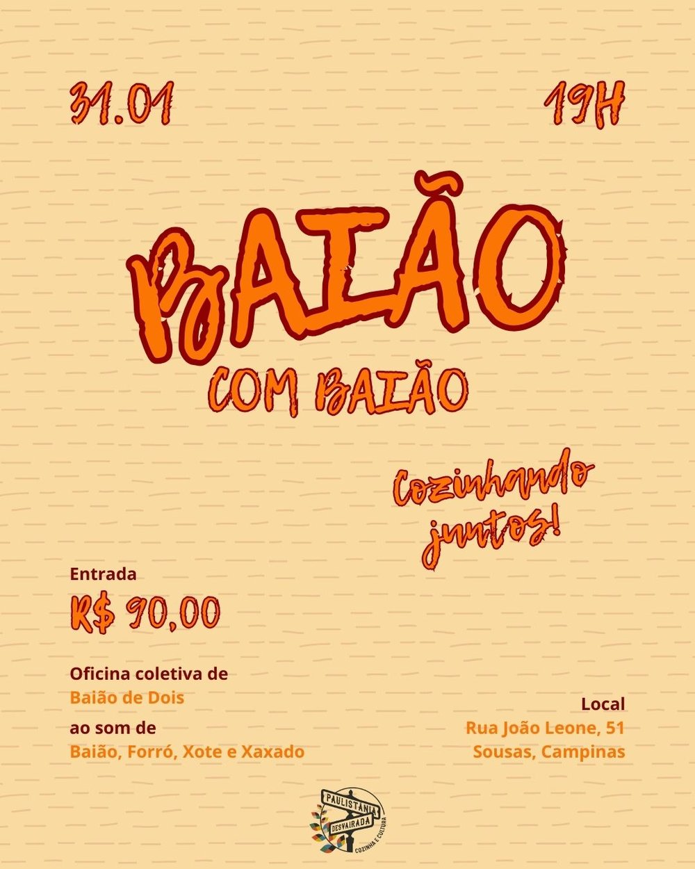 O Projeto Paulistânia Desvairada começa mais uma temporada do projeto Cozinhando Juntos no próximo dia 31 de janeiro, sexta, com a primeira oficina coletiva do ano: Baião com baião! Desta vez irá ensinar a fazer um prato típico do nordeste brasileiro, o baião de dois, com dicas de como fazer uma versão vegetariana também, tudo em um clima bem descontraído e ao som do baião, forró, xote e xaxado, do tempero a musicalidade.