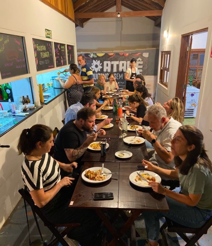 Além de colocar a mão na massa, a oficina proporciona esse momento de conexão e troca, onde cada etapa é acompanhada por histórias e dicas culinárias, celebrando o prazer de cozinhar e compartilhar refeições feitas com carinho e de forma coletiva.