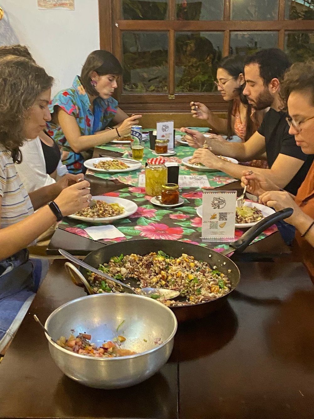 Na etapa final, a oficina se torna prática: junto a Thiago Villela Basile, chef do Tio Dinho, o grupo prepara coletivamente um risoto de queijo, pensado para harmonizar com um dos meles.